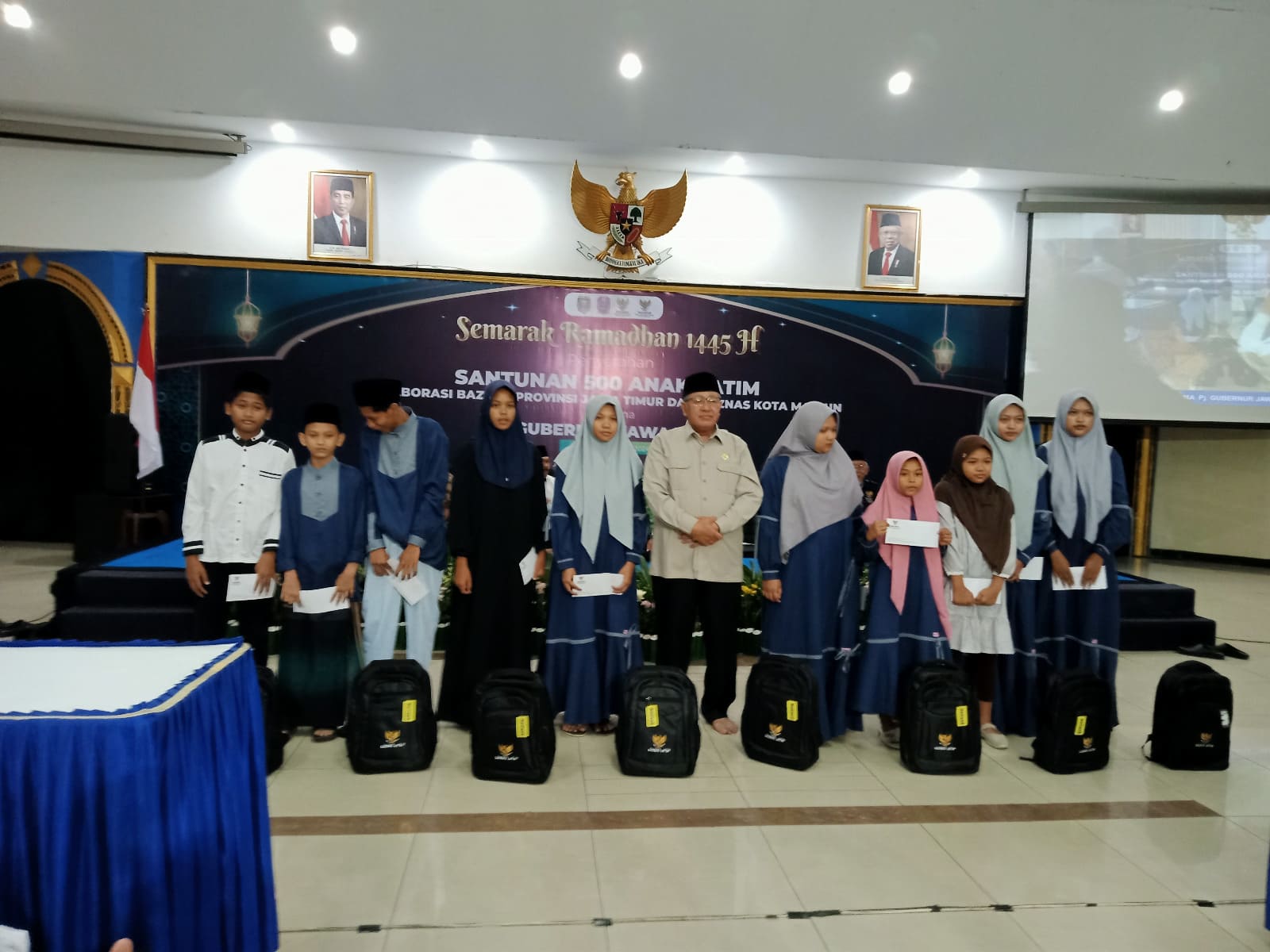 Badan Amil Zakat Nasional (Baznas) Provinsi Jawa Timur bekerja sama dengan Baznas Kota Madiun menggelar penyerahan santunan bagi anak yatim di Kota Pendekar. Kegiatan tersebut berlangsung di Wisma Haji Kota Madiun, Kamis (28/3) sore. Santunan diberikan kepada 500 anak yatim di Kota Madiun.