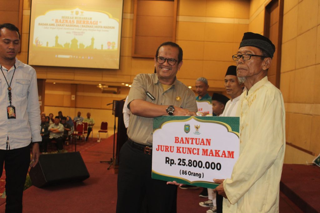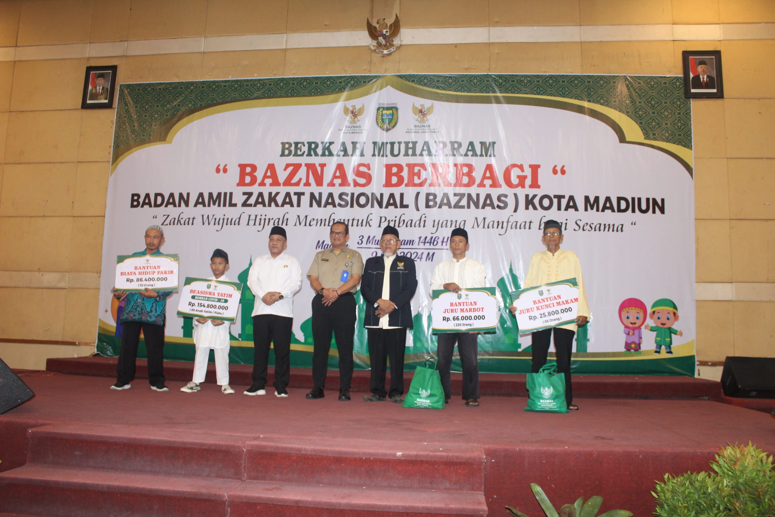 Muharram bulan yang penuh berkah di Kota Madiun. Bagaimana tidak, berbagai bantuan diberikan kepada masyarakat. Setidaknya ada ratusan marbot masjid, juru kunci makam, dan juga anak yatim korban Covid-19 yang mendapatkan bantuan dari program Berkah Muharram yang digelar Baznas Kota Madiun. Seremonial pemberian bantuan berlangsung di Hotel Merdeka dan dihadiri Sekda Kota Madiun, Soeko Dwi Handiarto, Selasa (9/7).